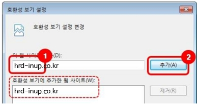 (호환성 보기에 추가한 웹 사이트에 hrd-inup.co.kr 확인)