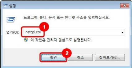 3. inetcpl.cpl을 입력 후 확인을 클릭
